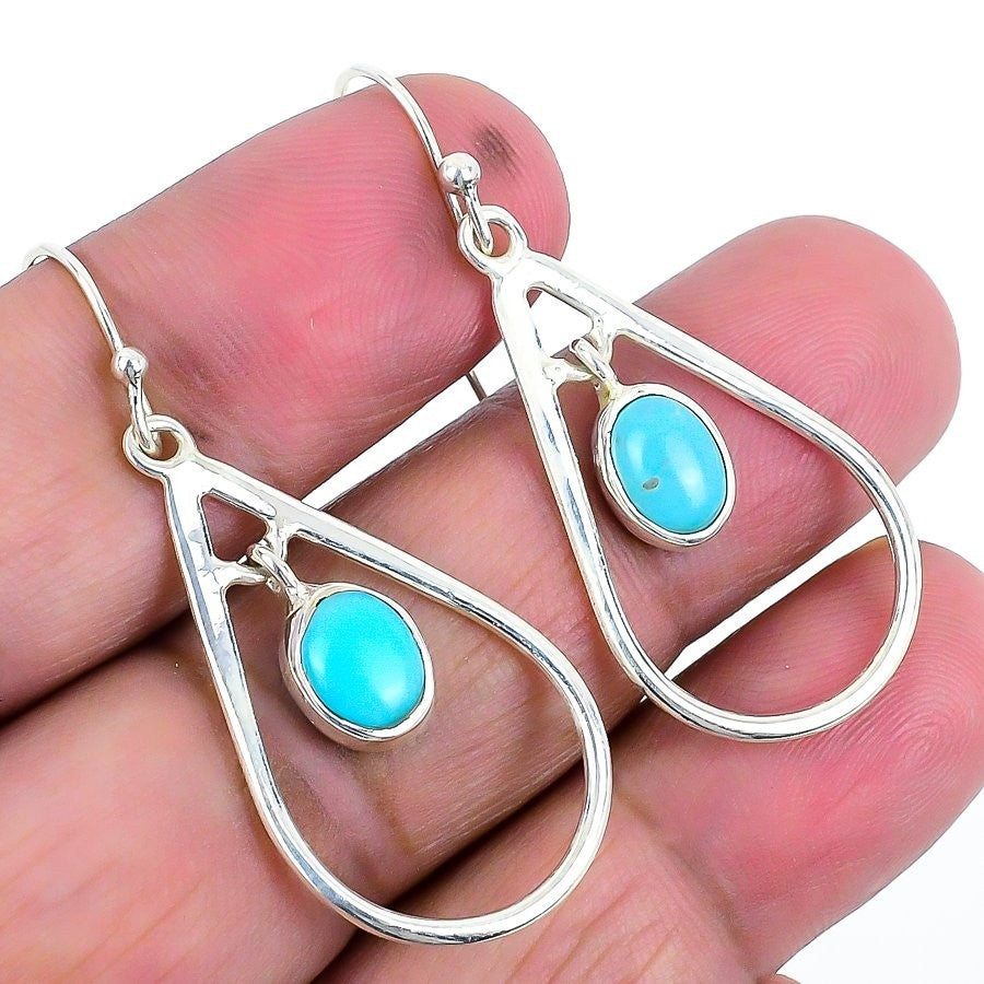 Natural Arizona Turquoise Sterling Silver Drop Dangle Butterfly Mother Earrings