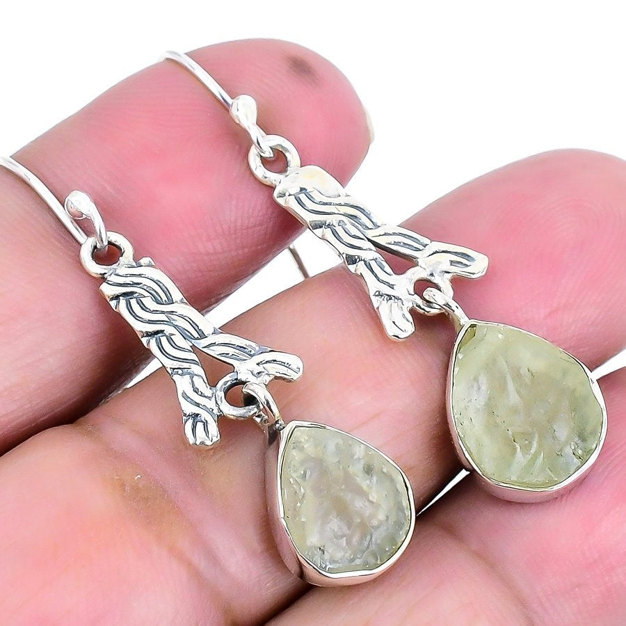 Prehnite Rough Gemstone 925 Silver Dangling Anniversary Artisan Earrings Jewelry