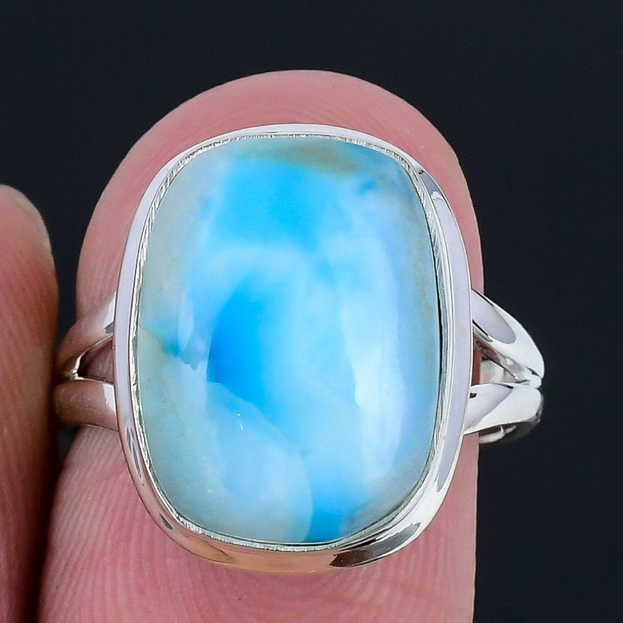 Republic Larimar Gemstone Solid Silver Engagement Wedding Statement Ring US 6.5