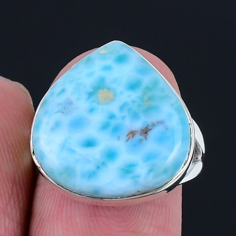 Republic Larimar Stone Sterling Silver Boho Statement Wife Ring Jewelry Size 7.5