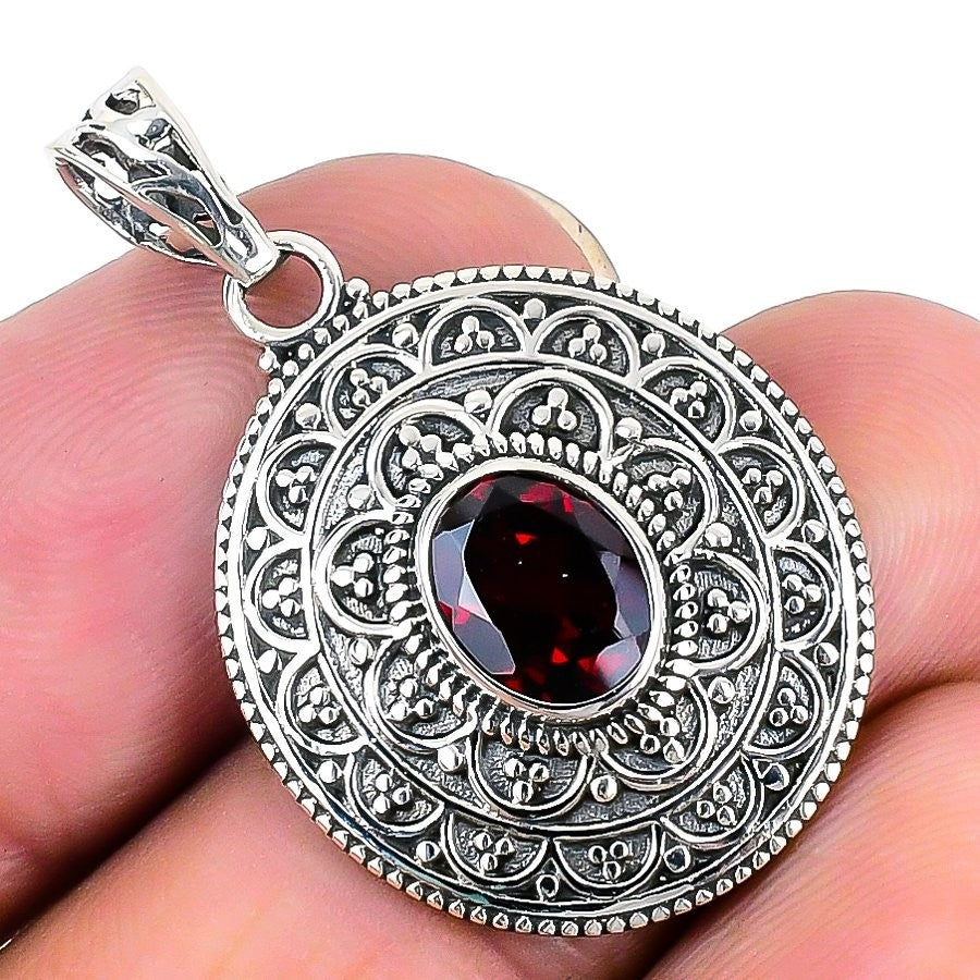 Garnet Stone 925 Sterling Silver Bezel Art Deco January Ethnic Elegant Pendant