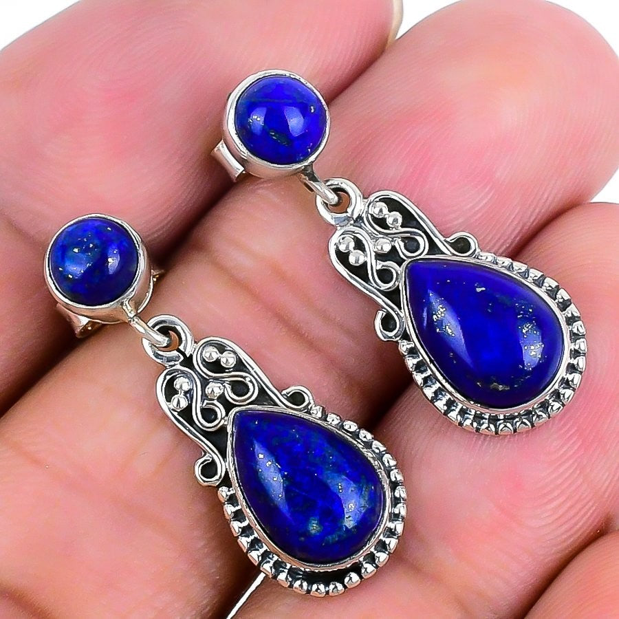Natural Lapis Lazuli Hook New Drop Dangle Wedding Earrings Solid Sterling Silver