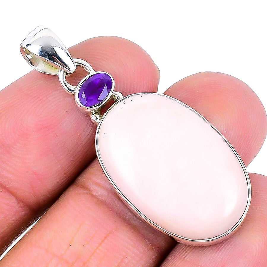 Pink Opal Stone Anniversary Sister Wedding Pendant Jewelry 925 Sterling Silver