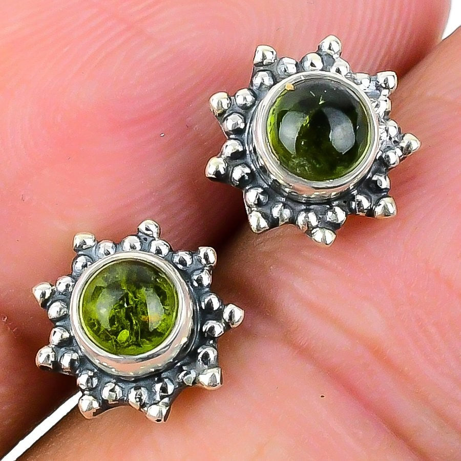 Moldavite Gemstone Anniversary Stud Post Birthday Hook Earrings Sterling Silver