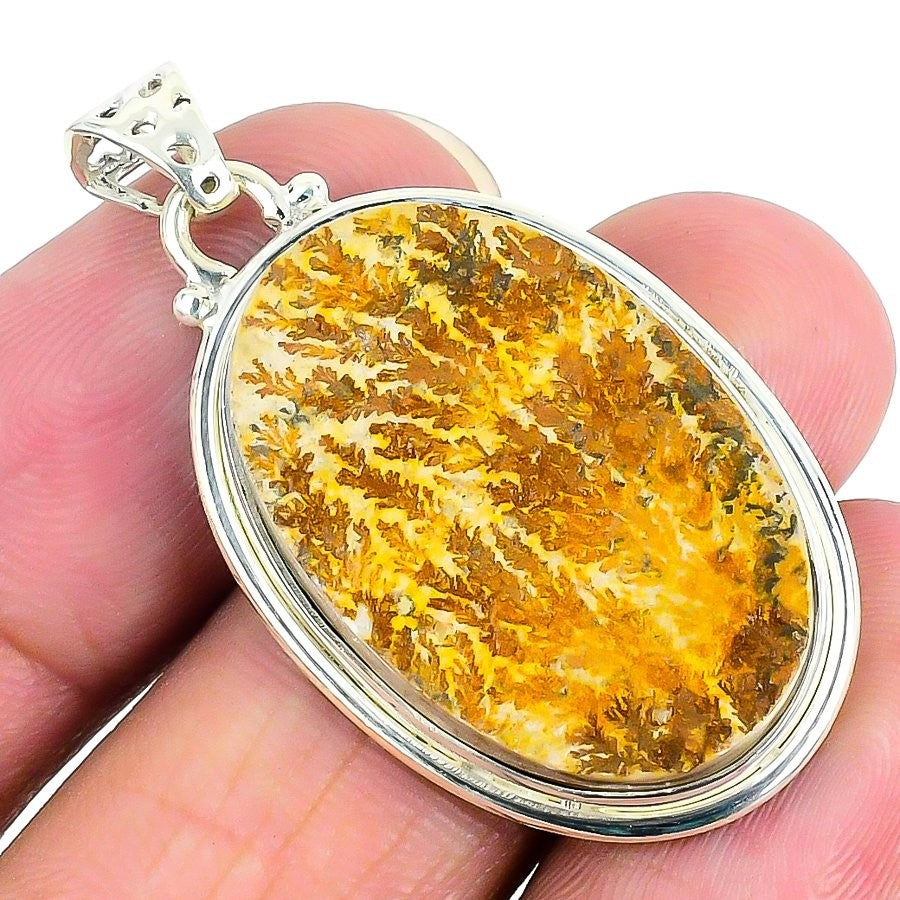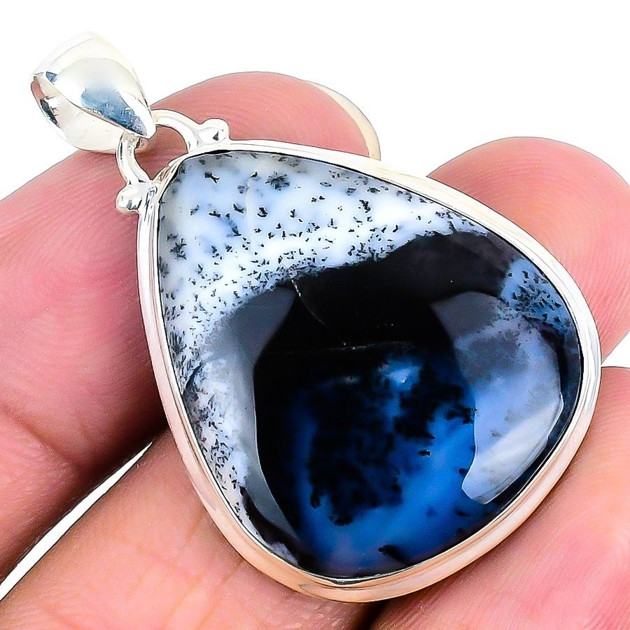 Dendrite Opal Gemstone Sterling Silver Mother Anniversary Bezel Pendant Jewelry