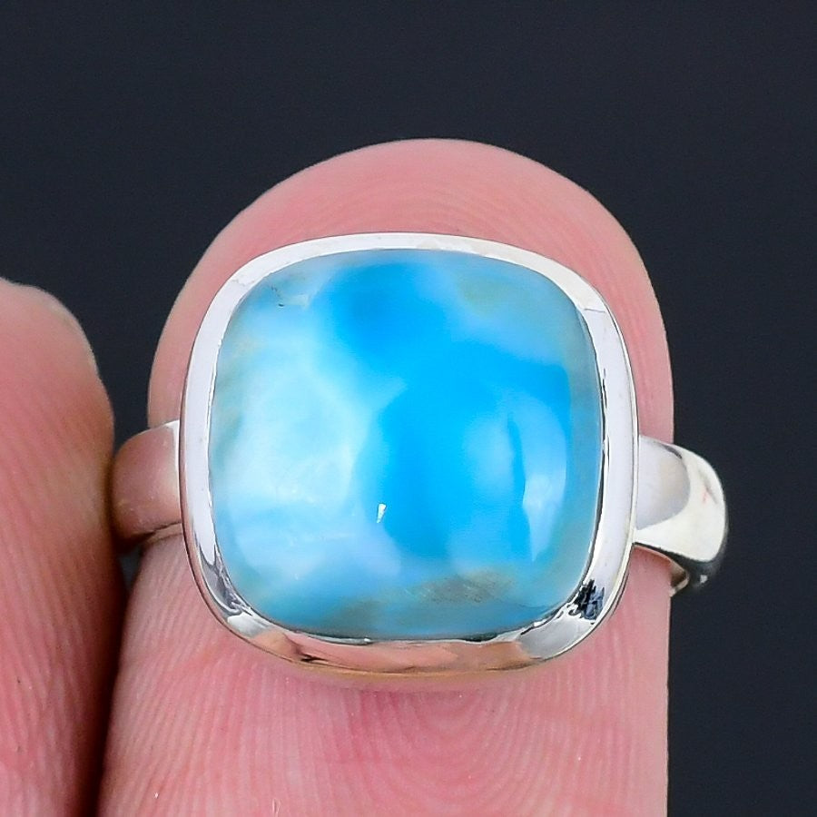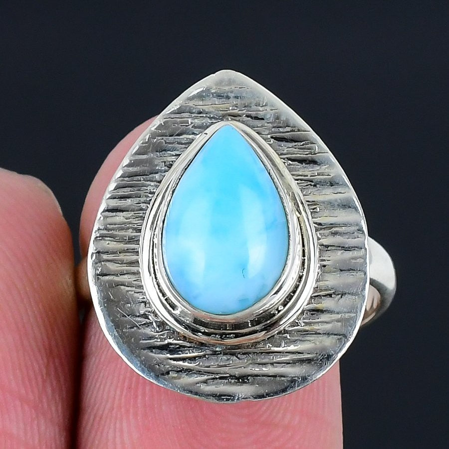 Republic Larimar Gemstone Solid Silver Handcrafted Statement Engagement New Ring