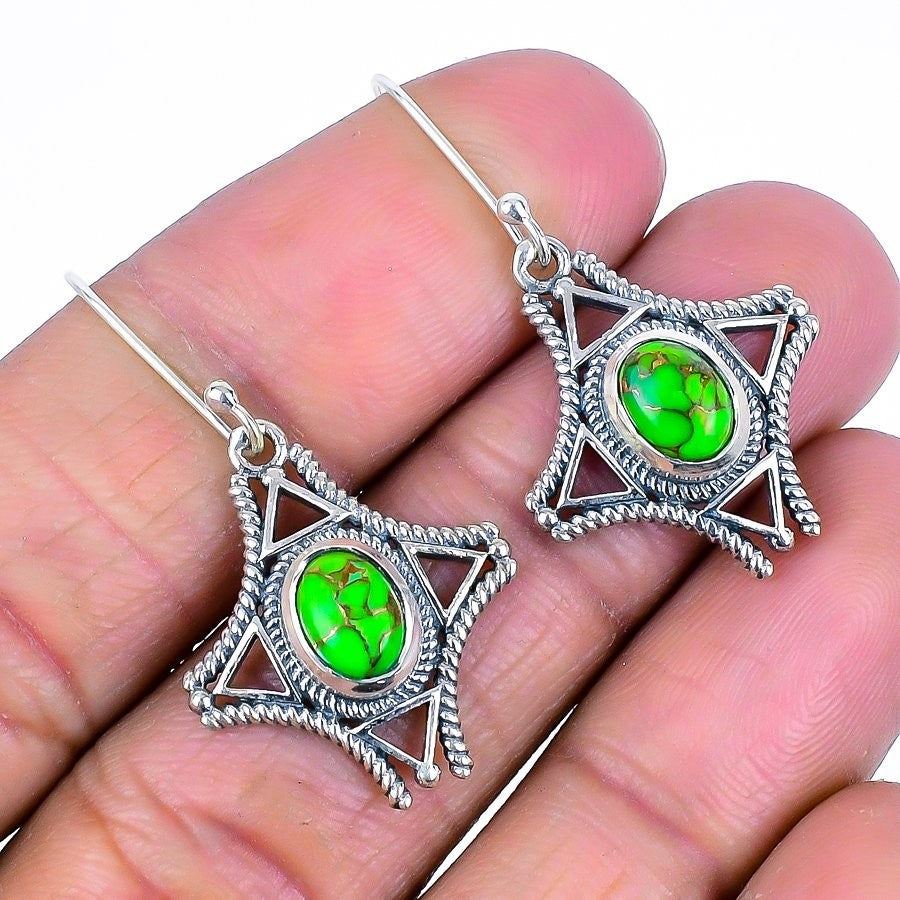 Copper Green Turquoise Gemstone 925 Silver Wedding Dangle Drop Earrings Jewelry
