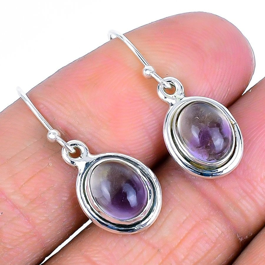 Sage Amethyst Stone 925 Solid Silver Birthday Drop Mother Ethnic Boho Earrings