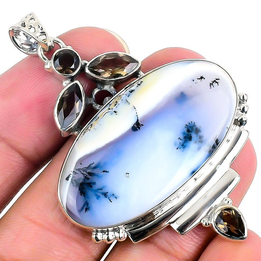 Dendrite Opal Gemstone Engagement Sister Art Deco Birthday Pendant Solid Silver