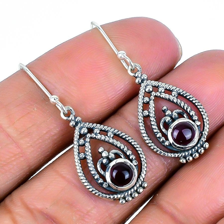 January Birth Natural Garnet Sterling Silver Handmade Dangling Sister Earrings