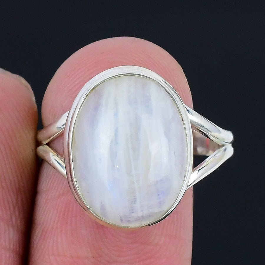 Moonstone Gemstone Statement Friend Gift Ring Jewelry Solid Sterling Silver US 9