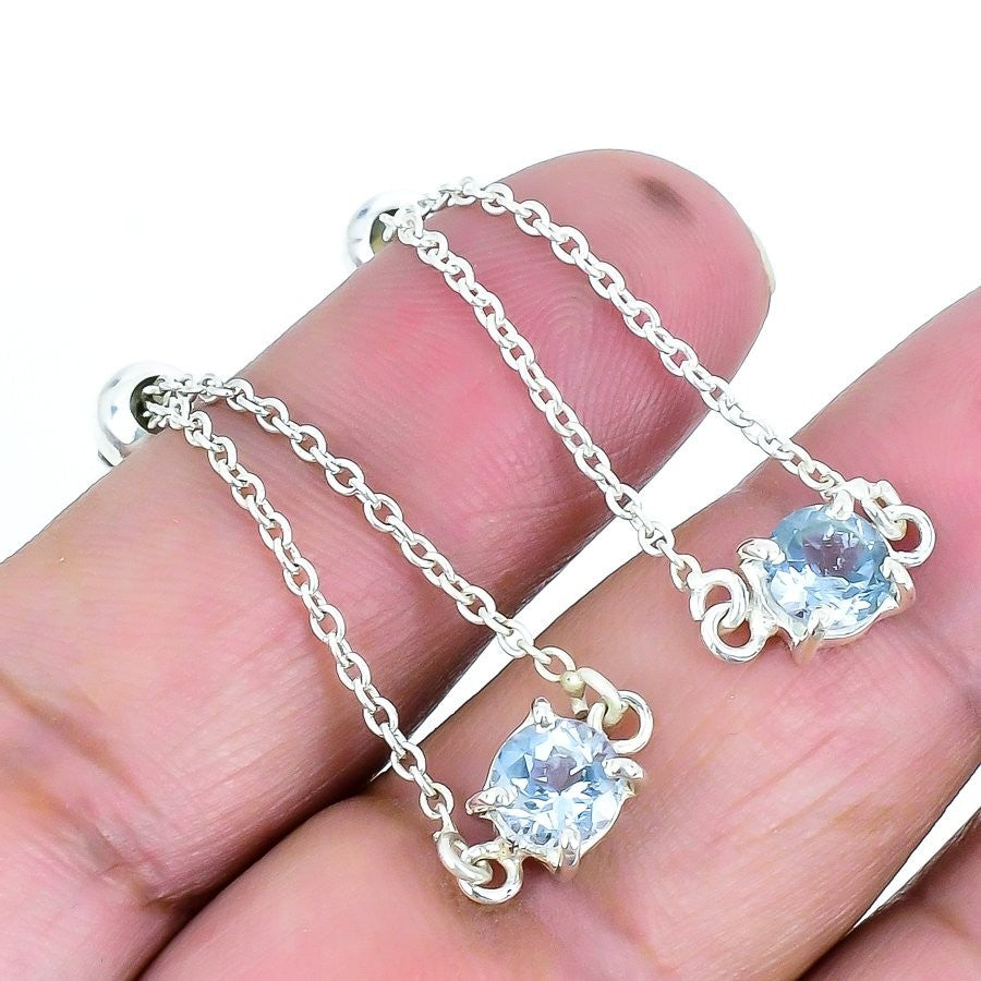 Swiss Blue Topaz Gemstone Sterling Silver Trendy Dangling Handcrafted Earrings