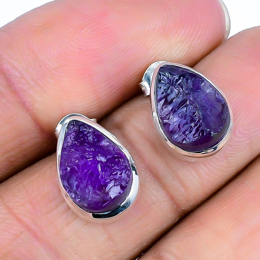Amethyst Druzy Gemstone Unique Stud Art Deco Sisters Gift Earrings Solid Silver