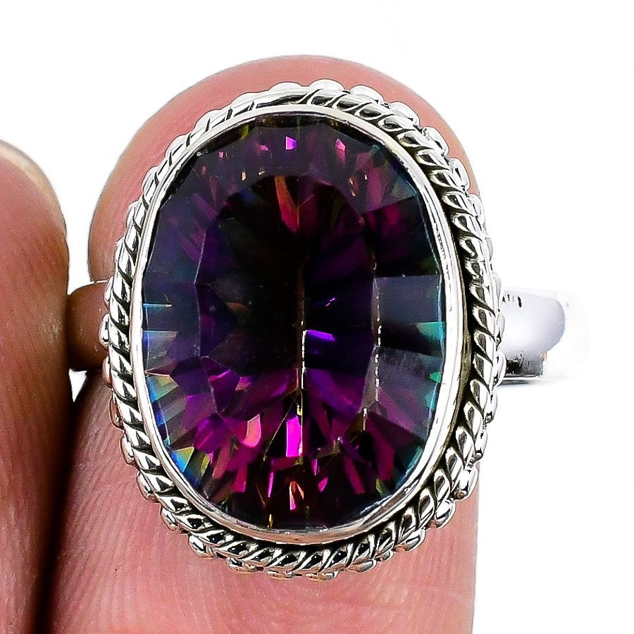 Mystic Topaz Gemstone Solid Sterling Silver Statement Daughter Bezel Ring Size 9
