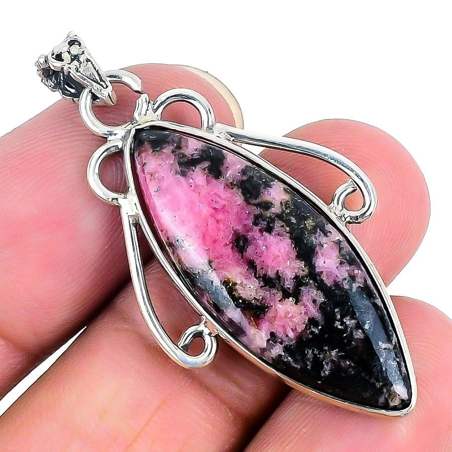 Heart Chakra Rhodonite Stone Engagement Ethnic Mother Elegant Pendant 925 Silver