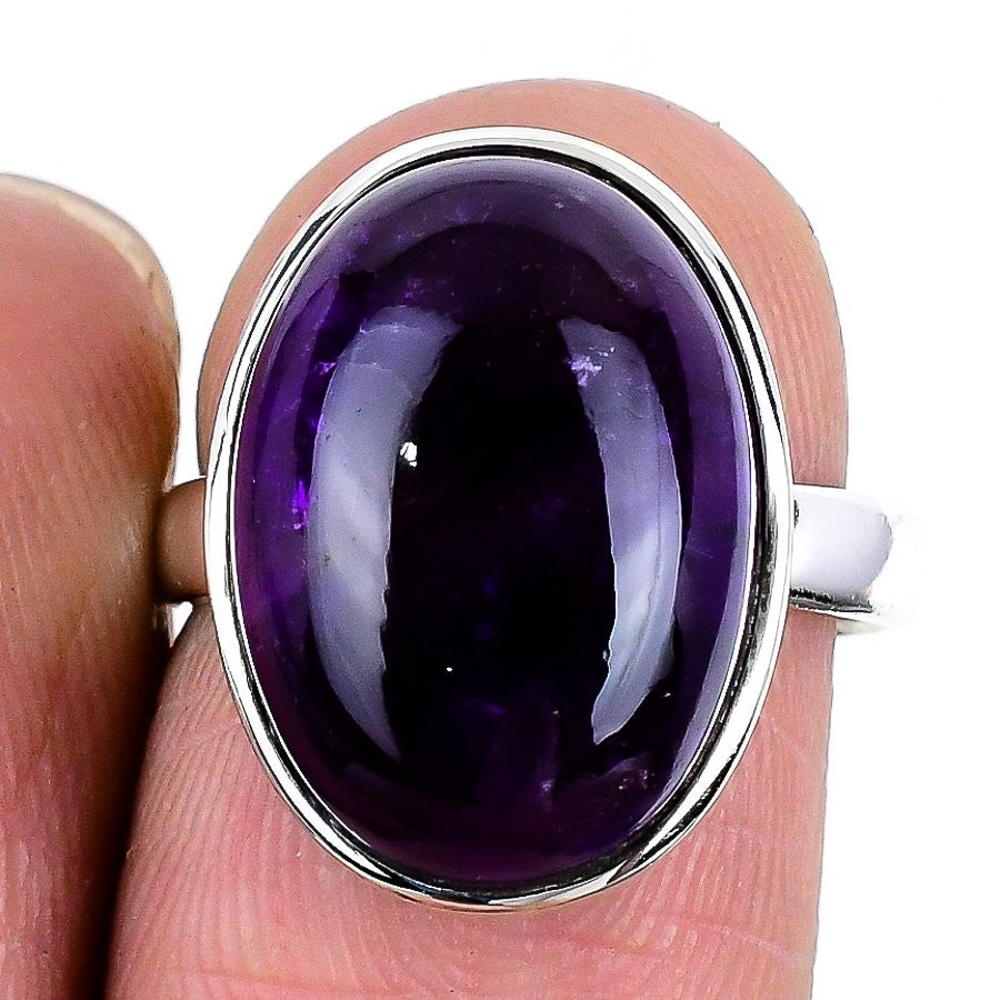 Sage Amethyst Stone Solid Silver Daughter Wedding Statement Ring Jewelry Size 7