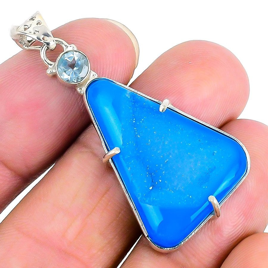 Blue Druzy Stone 925 Sterling Silver Ethnic Friendship Day Wife Pendant Jewelry