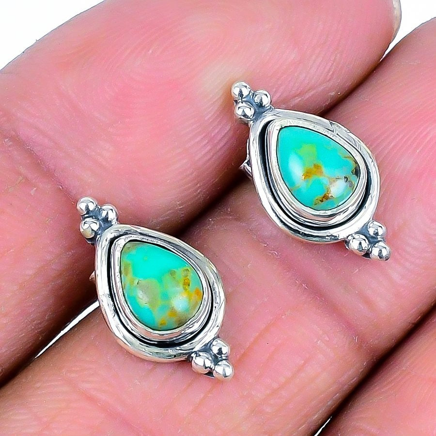 Arizona turquoise Stone Sterling Silver Daughter Handmade Stud Wedding Earrings