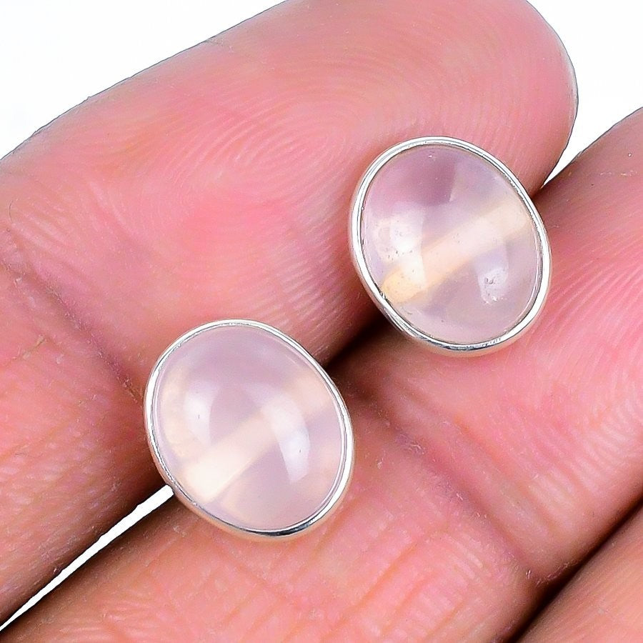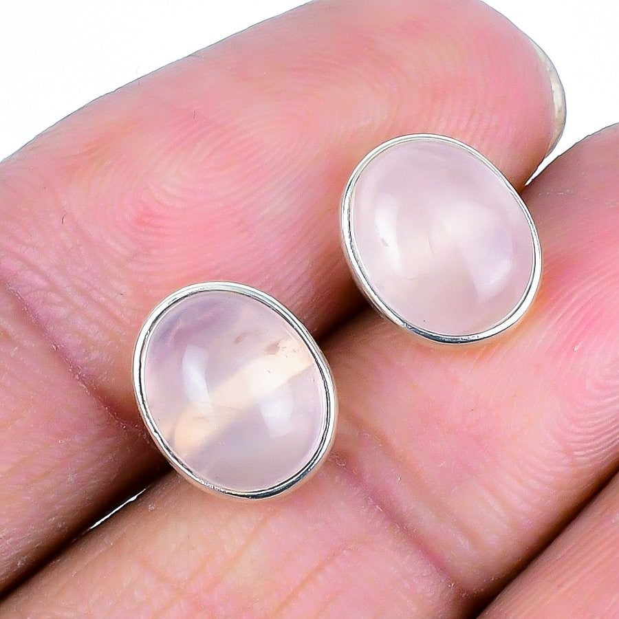 Rose Quartz Stone Stud Post Heart Chakra Artisan Earrings 925 Sterling Silver