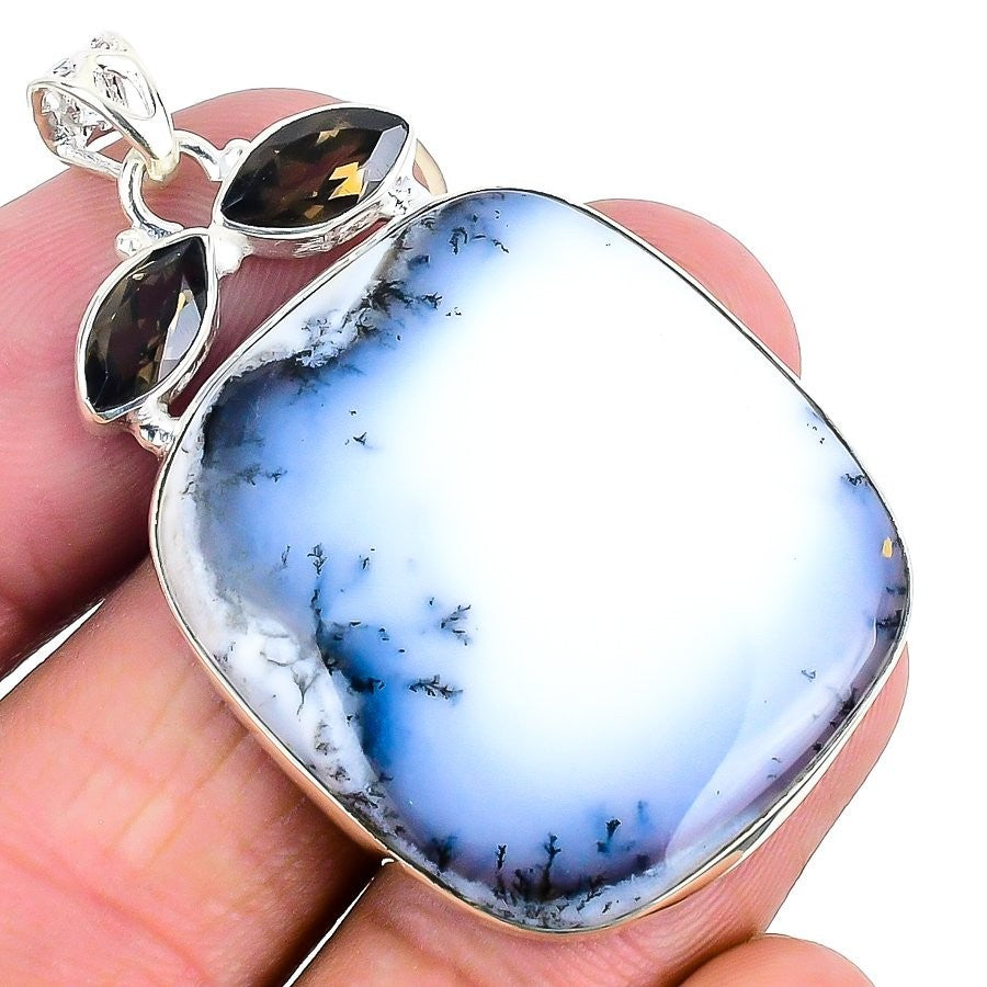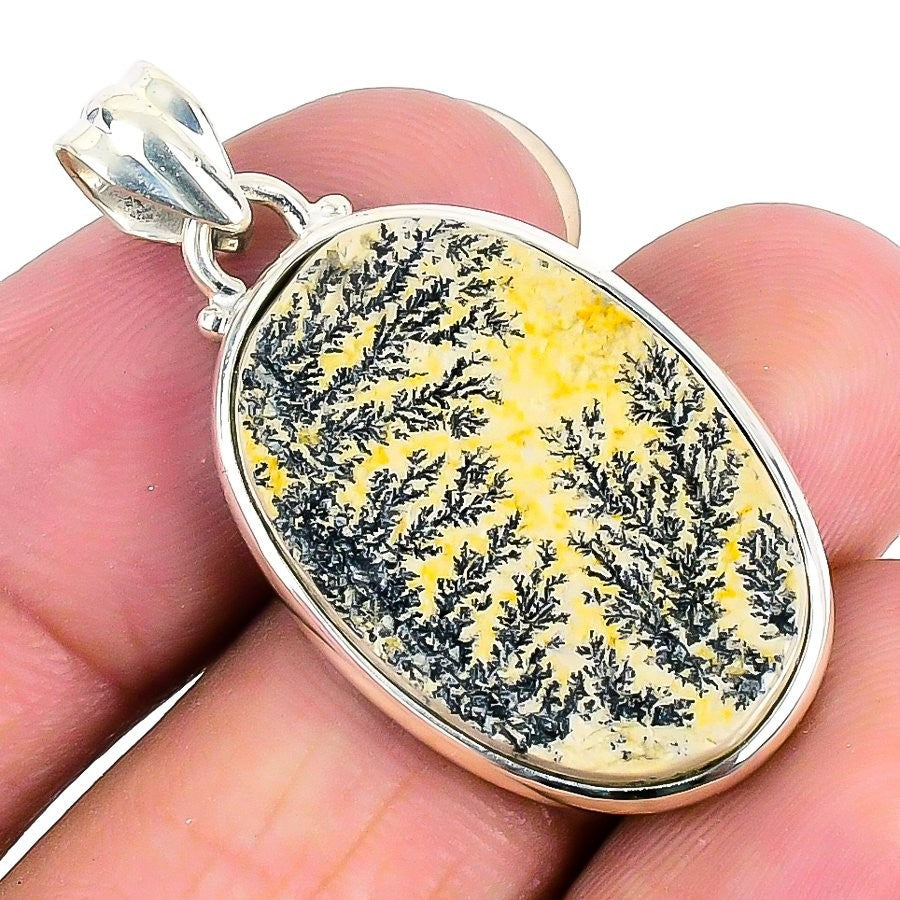 Dendrite Opal Gemstone Sisters Day Mother Elegant New Pendant Jewelry 925 Silver