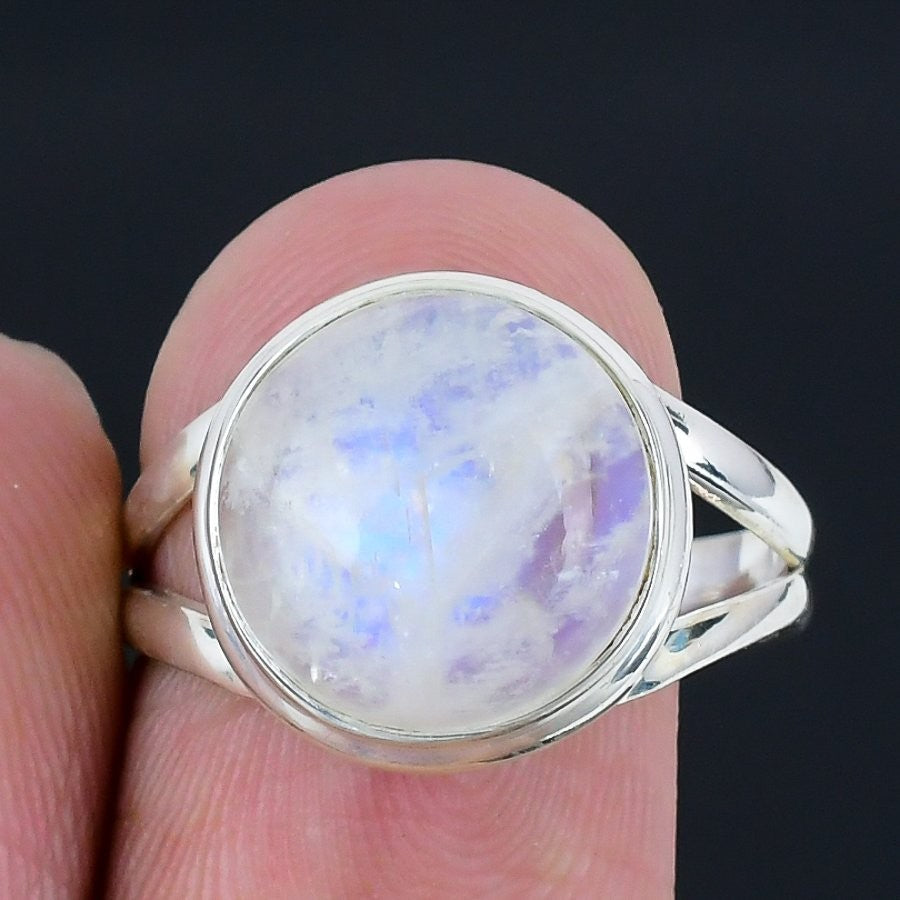 Crown Chakra Moonstone Stone 925 Sterling Silver Birthday Statement Ring Jewelry
