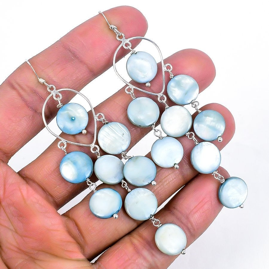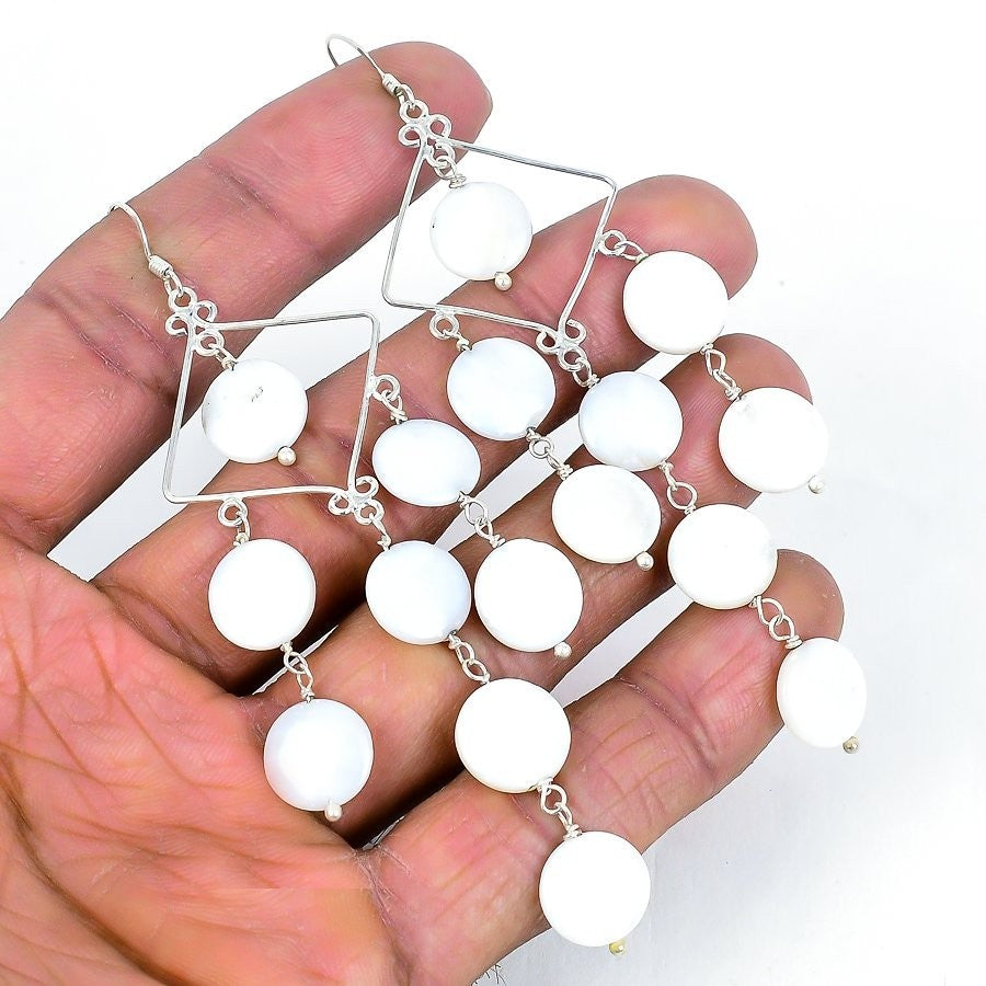 Mother Of Pearl Gemstone 925Ā SolidĀ Silver Dangling Wife Trendy Earrings Jewelry