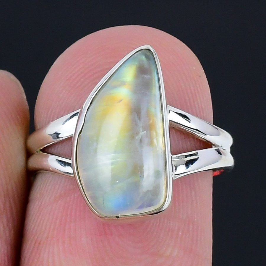 Moonstone Gemstone June Birth Statement Unique New Ring 925 Sterling Silver US 8