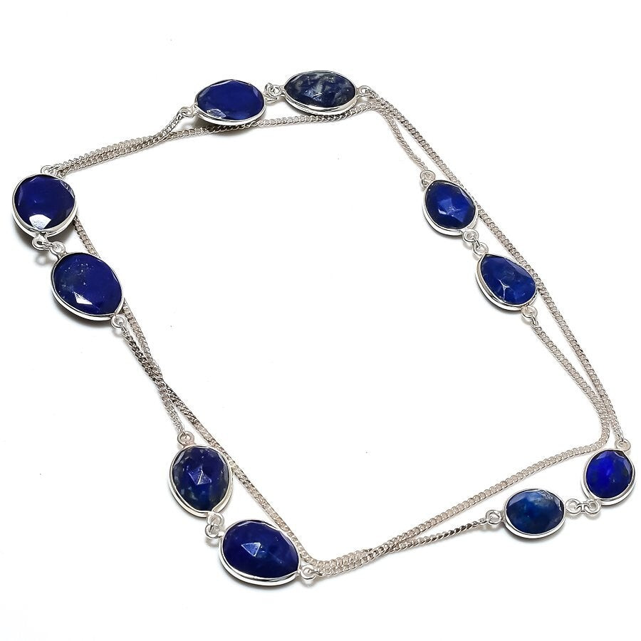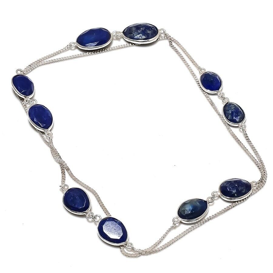 Natural Blue Sapphire 925Ā SolidĀ Silver Chain Art Deco Engagement Sister Necklace