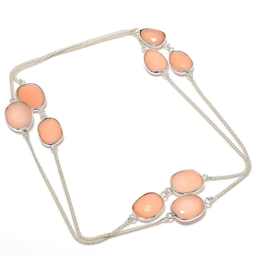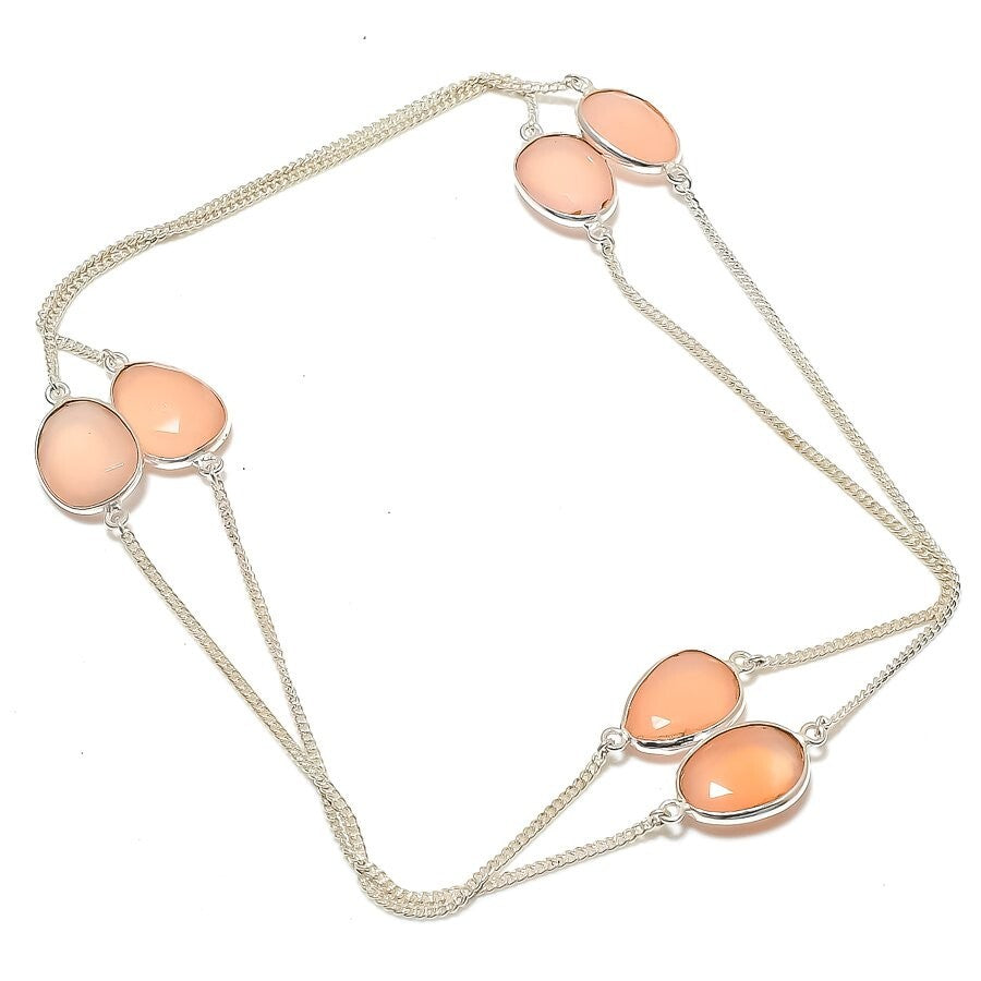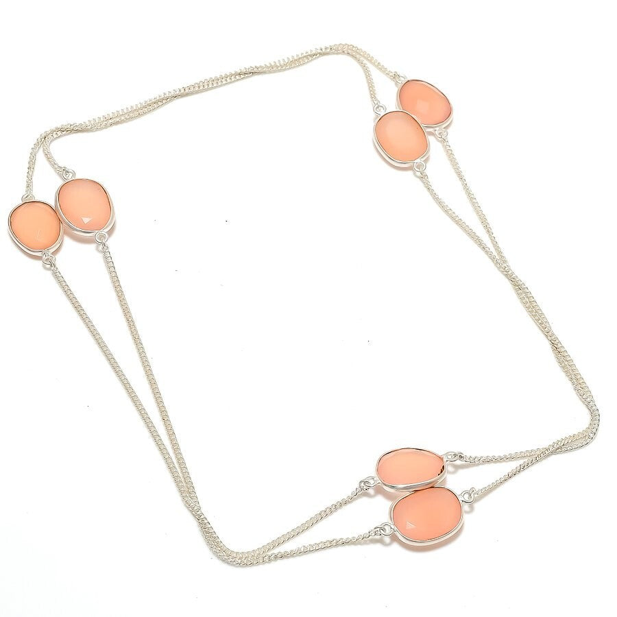 Natural Rose Quartz Sister Anniversary Chain Handmade Necklace Sterling Silver