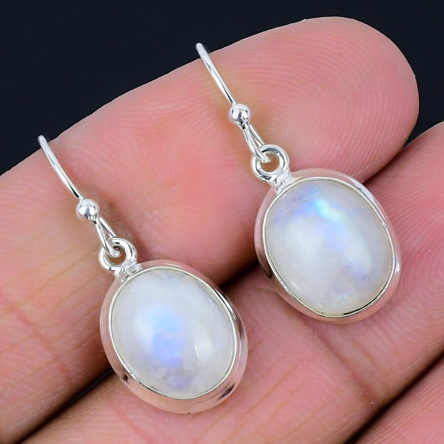 Rainbow Moonstone Stone Hook Engagement Drop Mother New Earrings Sterling Silver