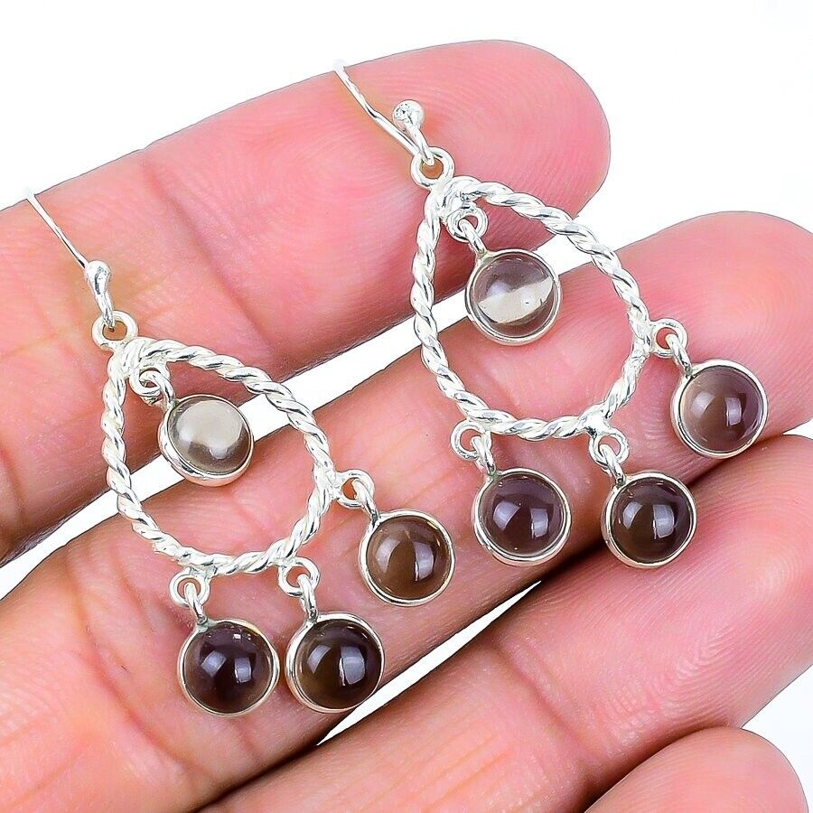 Smoky Topaz Stone 925 Sterling Silver Hook Mother Wedding Drop Dangle Earrings