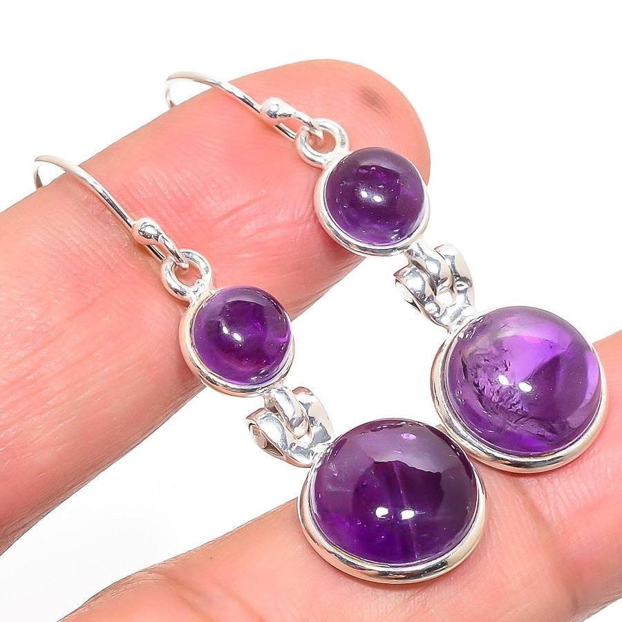 Natural Sage Amethyst 925 Silver Artisan Dangling Hook Birthday Earrings Jewelry