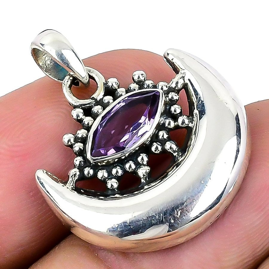 Amethyst Stone Solid Sterling Silver February Engagement Mother Artisan Pendant