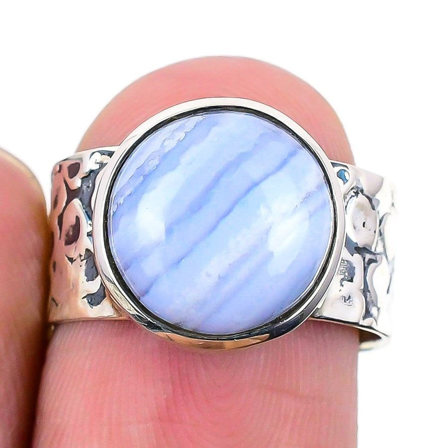 Blue Lace Agate Stone 925 Sterling Silver Mother Statement Ring Jewelry Size 7.5