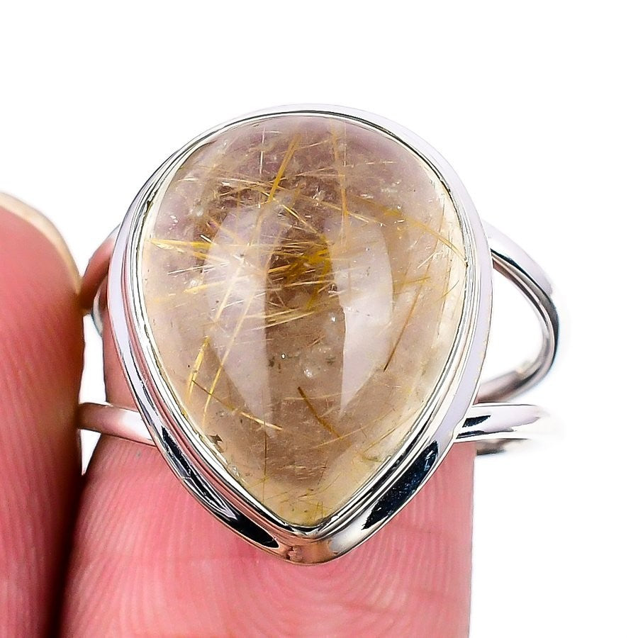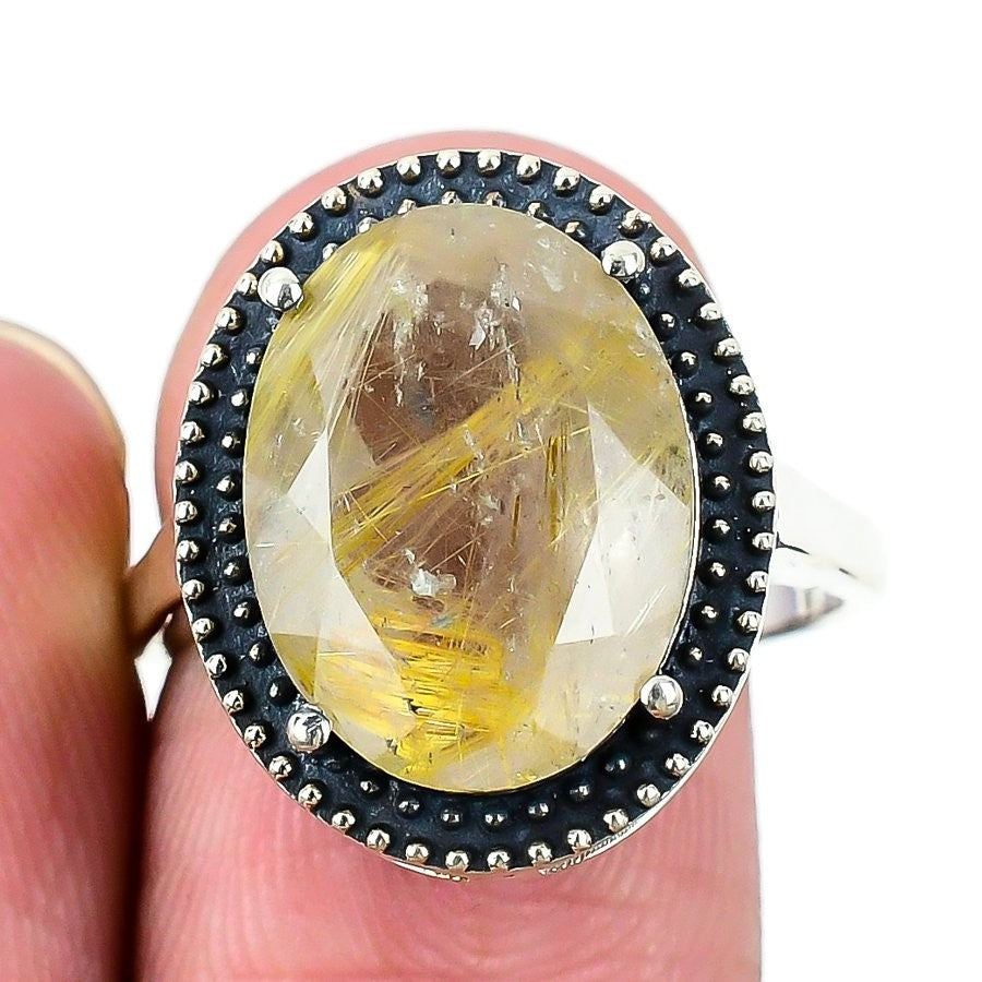 Natural Golden Rutile Handmade Statement Ring Jewelry Solid Sterling Silver US 9