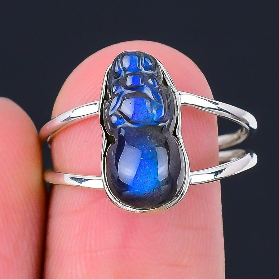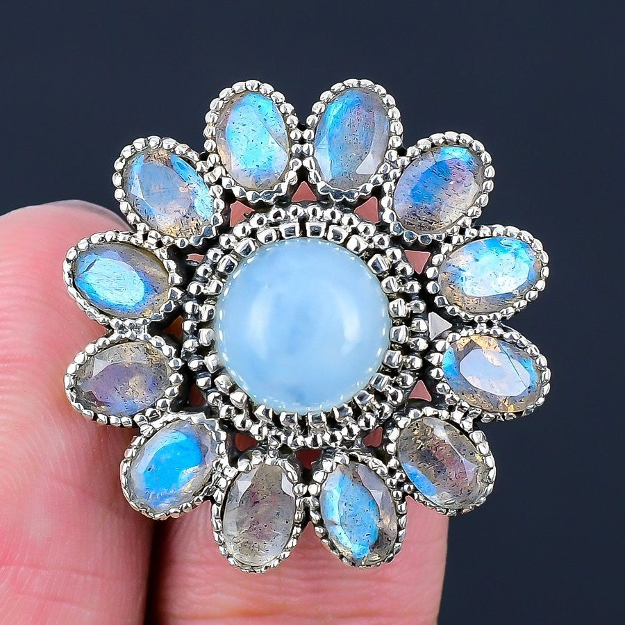 Third Eye Chakra Natural Labradorite 925 Solid Silver Statement New Ring Jewelry