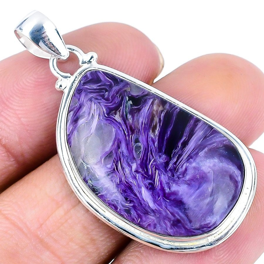 Sisters Day Deal Russian Charoite Gemstone 925 Silver Engagement Pendant Jewelry