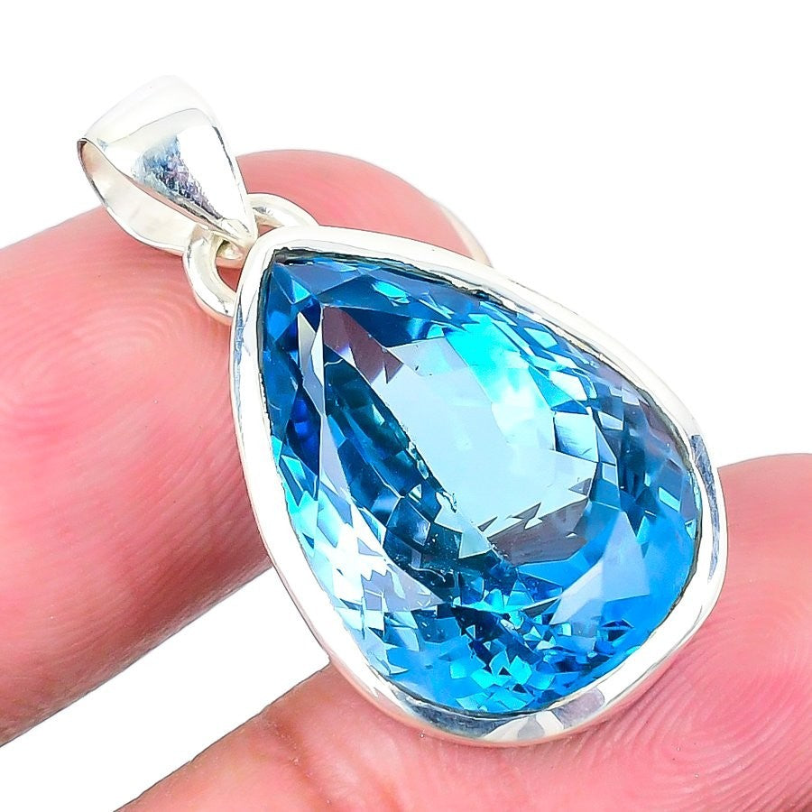 Sisters Day Sale Swiss Blue Topaz Stone Solid Silver Wedding Mother Boho Pendant