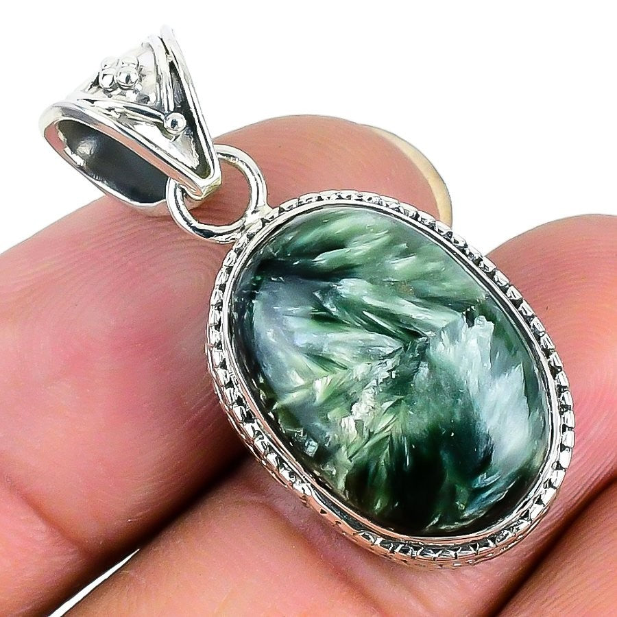 Seraphinite Stone Artisan Engagement Elegant Pendant Jewelry 925 Sterling Silver