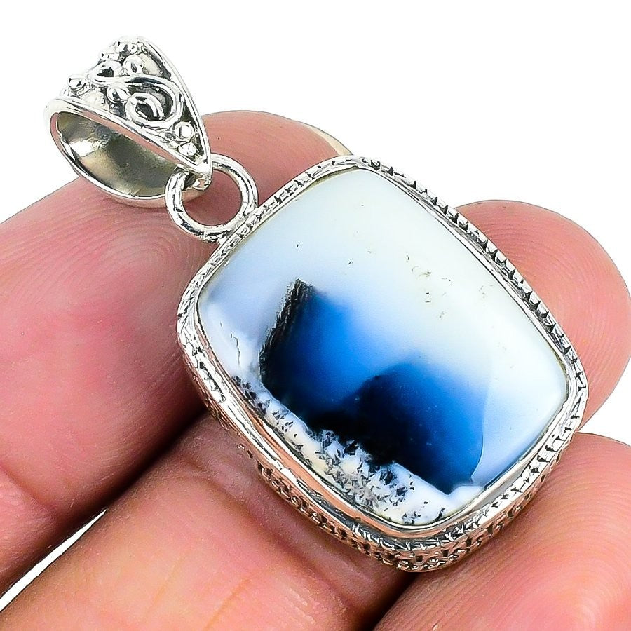 Dendrite Opal Stone Sterling Silver Engagement Bezel Mother Boho Pendant Jewelry