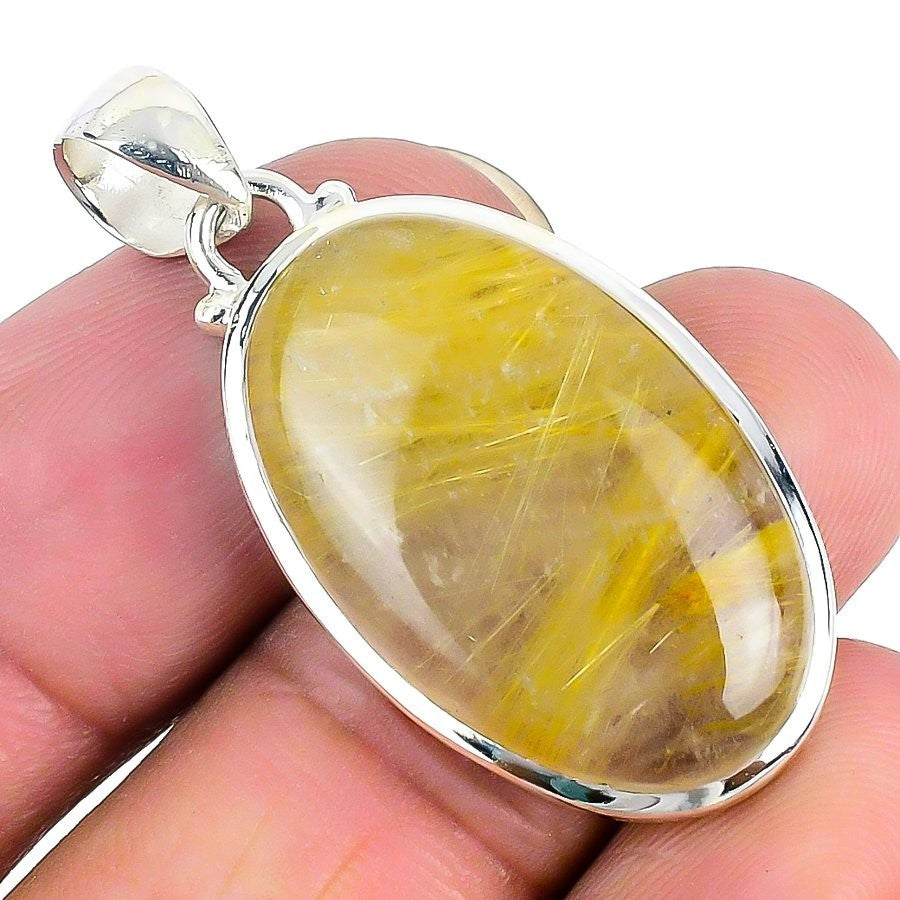 Sisters Day Deal Golden Rutile Stone 925 Silver Bezel Anniversary Trendy Pendant