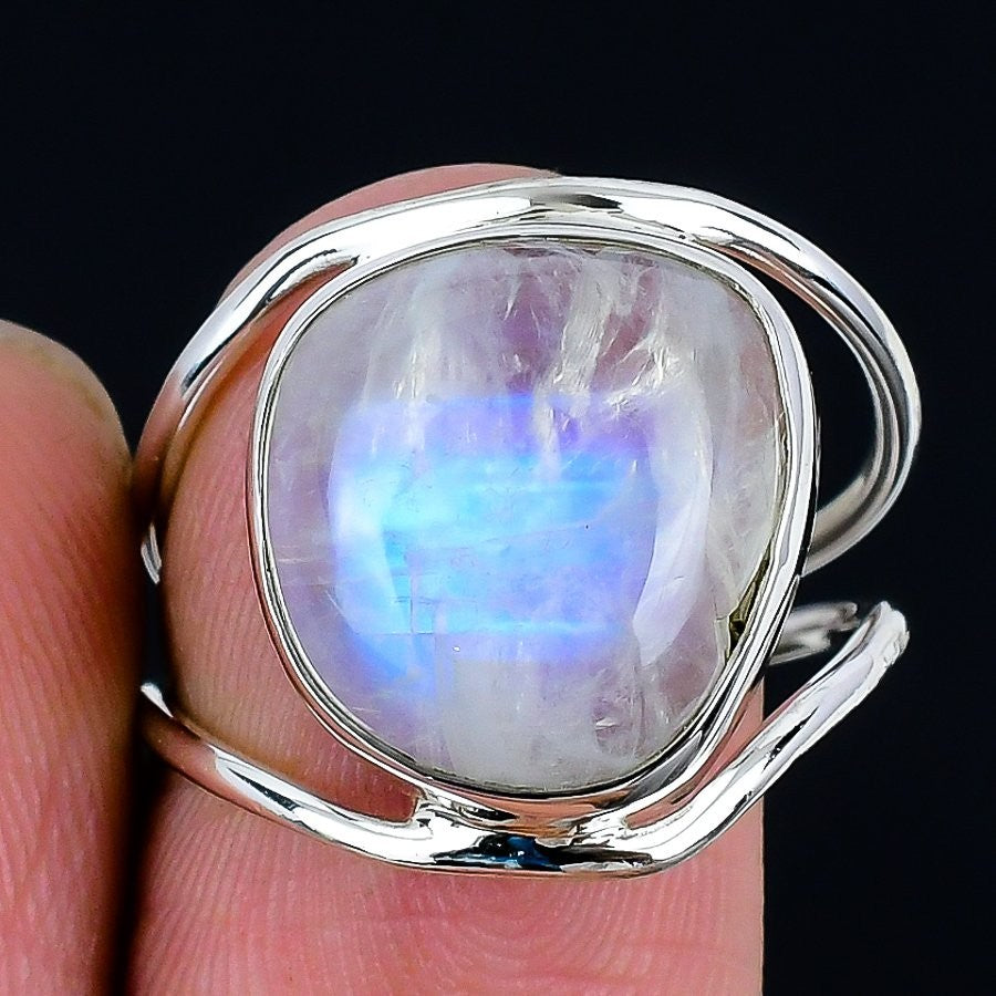 Natural Moonstone Sterling Silver Statement Artisan June New Ring Jewelry US 10