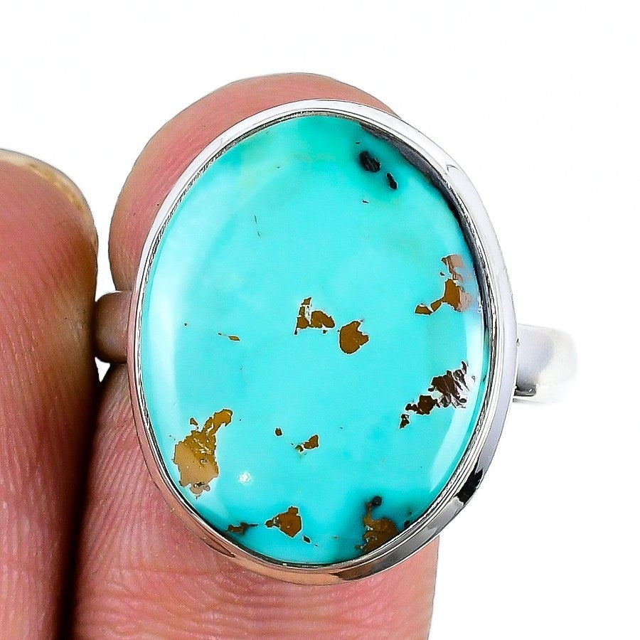 Pyrite In Turquoise Gemstone Sterling Silver Statement Bezel Ring Jewelry US 12