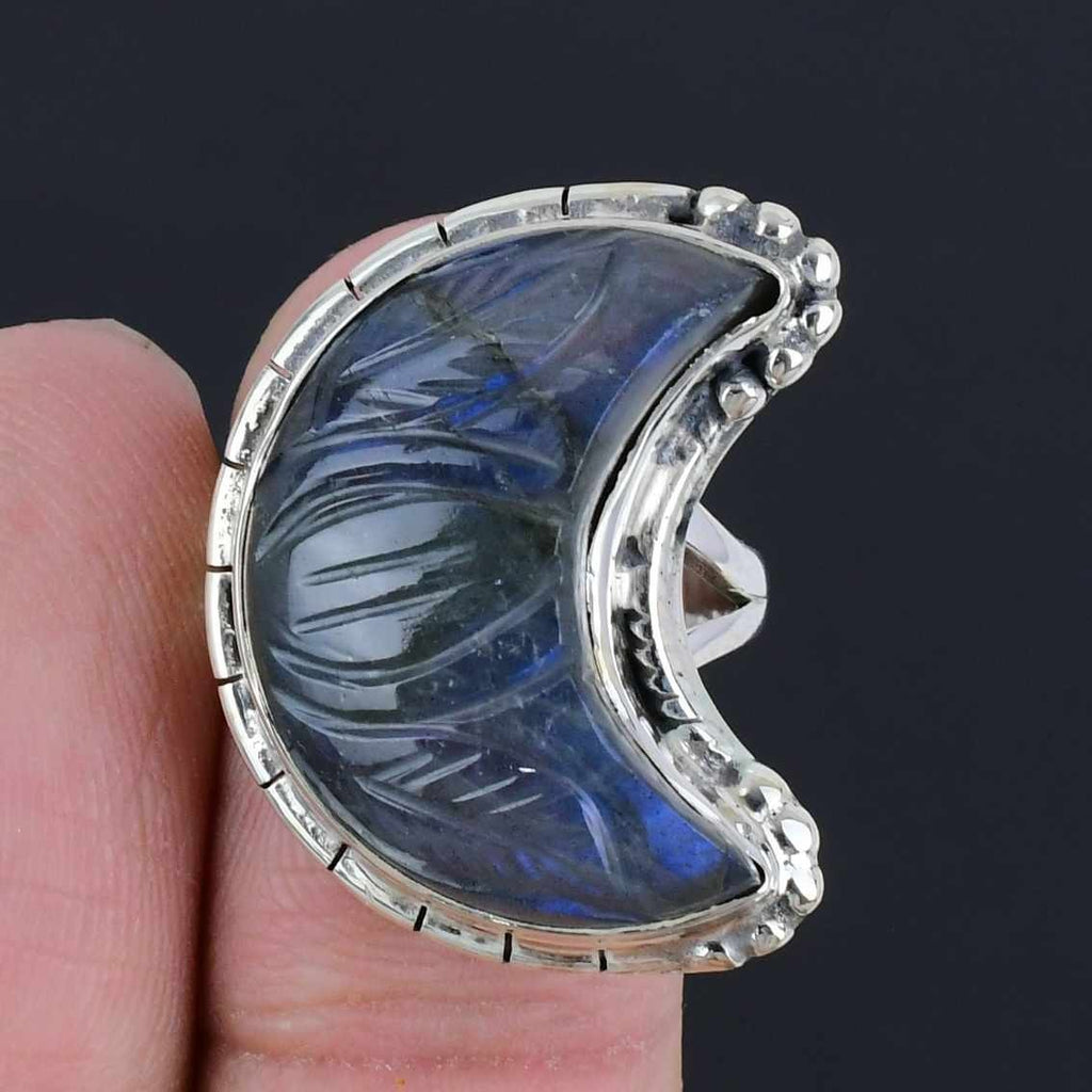 Labradorite Carving Stone Solid Sterling Silver Boho Wedding Cluster Ring Size 8