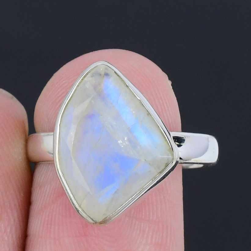 Natural Rainbow moonstone faceted 925 Sterling Silver Wife Cluster Ring Jewelry