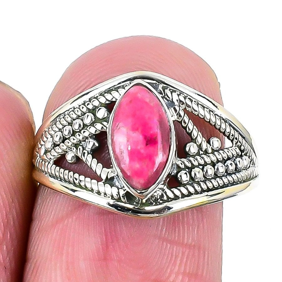 Pink Thulite Gemstone Solid Silver Elegant Cluster Boho Ring Jewelry Size 7.5