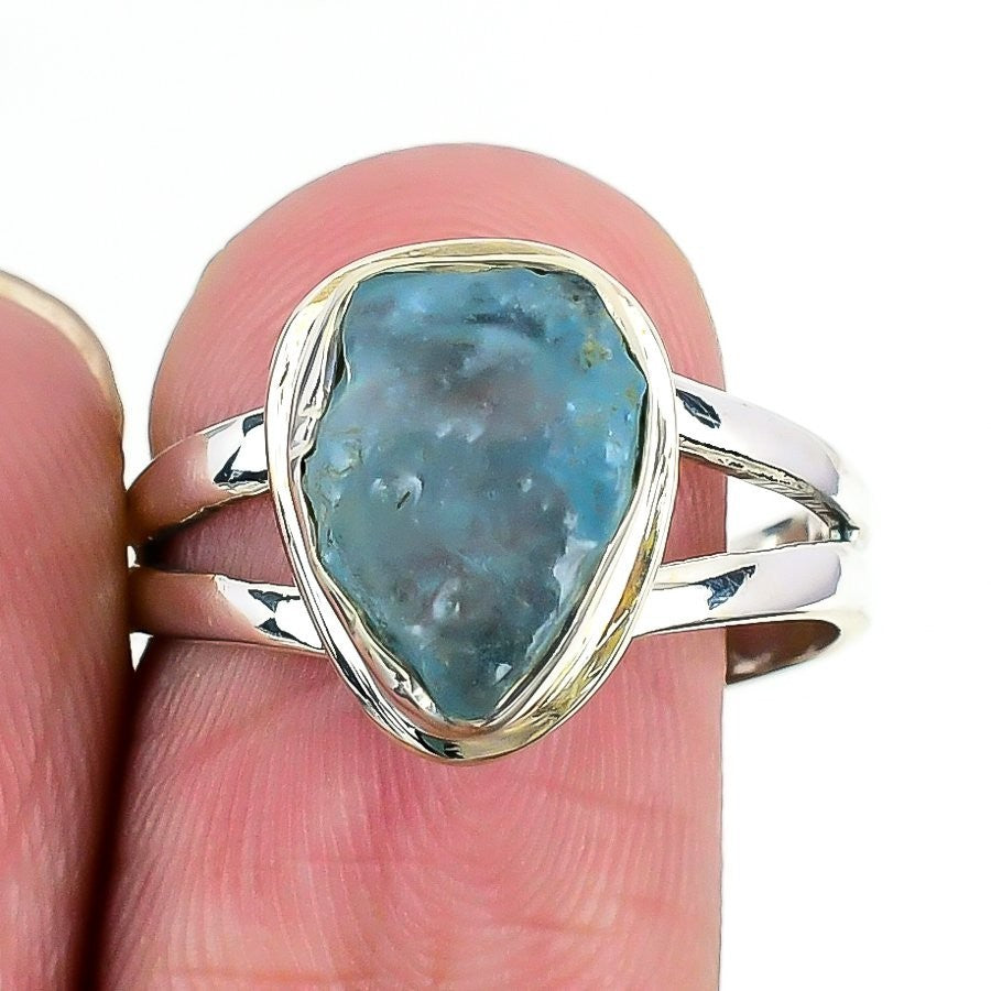 Aquamarine Gemstone 925 Silver Birthday Bezel Anniversary Statement March Ring