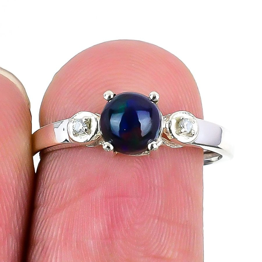 Natural Ethiopian Opal 925 Solid Silver Wedding Statement Ring Jewelry US 7.5