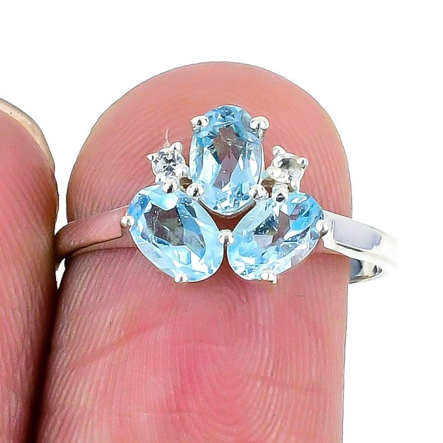 Swiss Blue Topaz Stone Bezel Statement Engagement Ring Jewelry Size 7 925 Silver