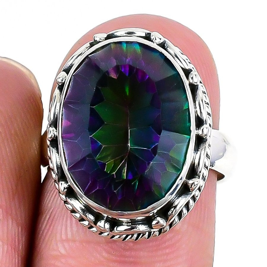 Mystic Topaz Stone Solid Sterling Silver Statement Channel Set Ring Jewelry US 7